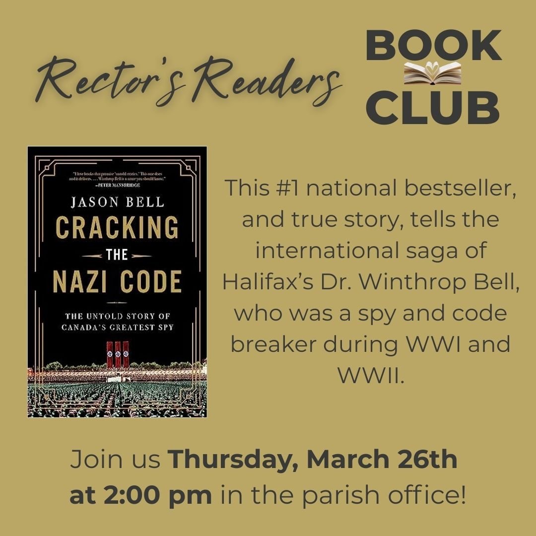 The book club will meet on Thursday, March 26th at 2:00 pm in the parish office to discuss this book.