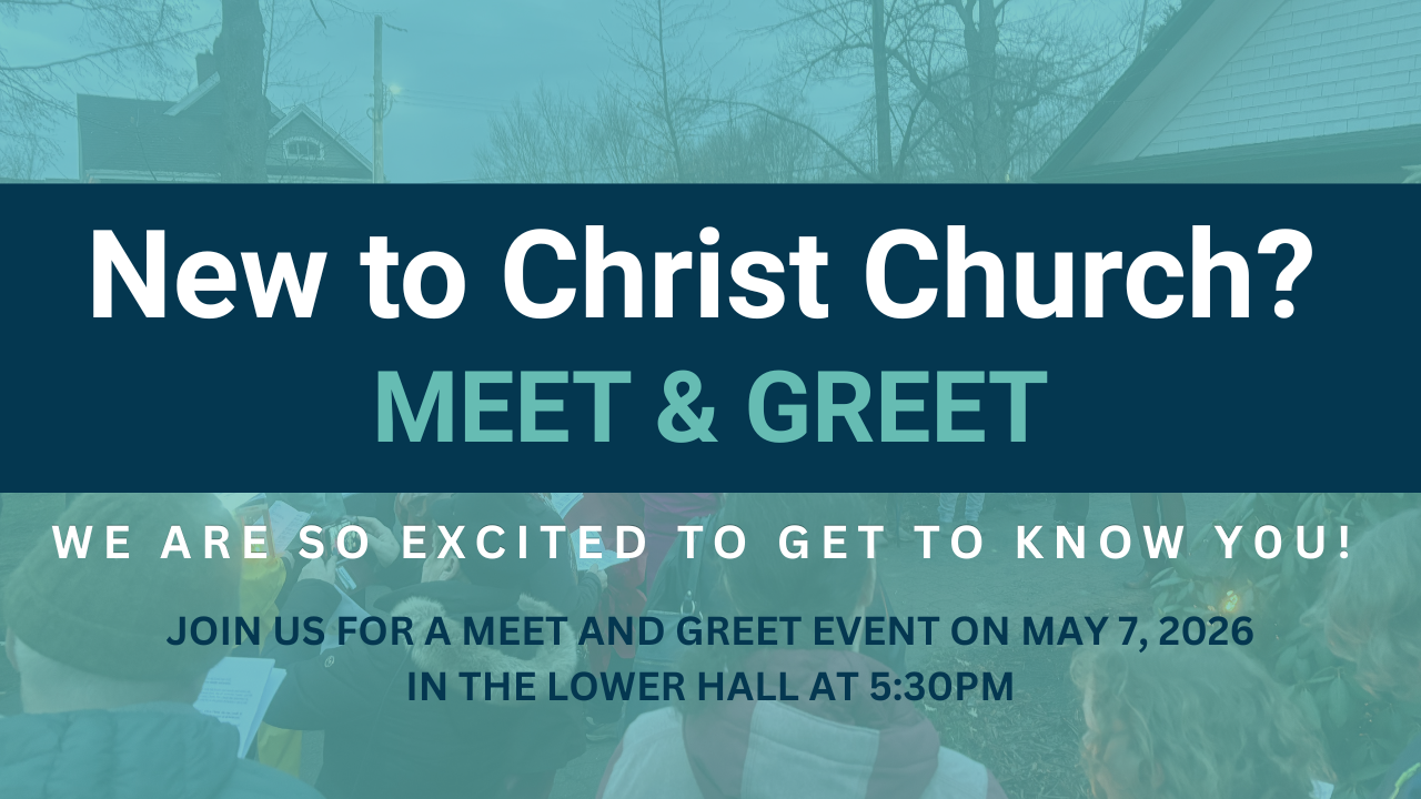Join us for a special Meet & Greet on Thursday, May 7th at 5:30pm in the Lower Hall (61 Dundas Street) designed just for those who are new to our church, or for those who have been coming for some time but would like to know more! You’ll have a chance to meet our pastor and parish wardens, hear about our vision and ministries, ask questions, and connect with others in a relaxed, welcoming setting. We’ll also enjoy food and fellowship together. We’d love to get to know you — everyone is welcome!